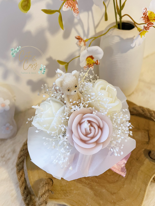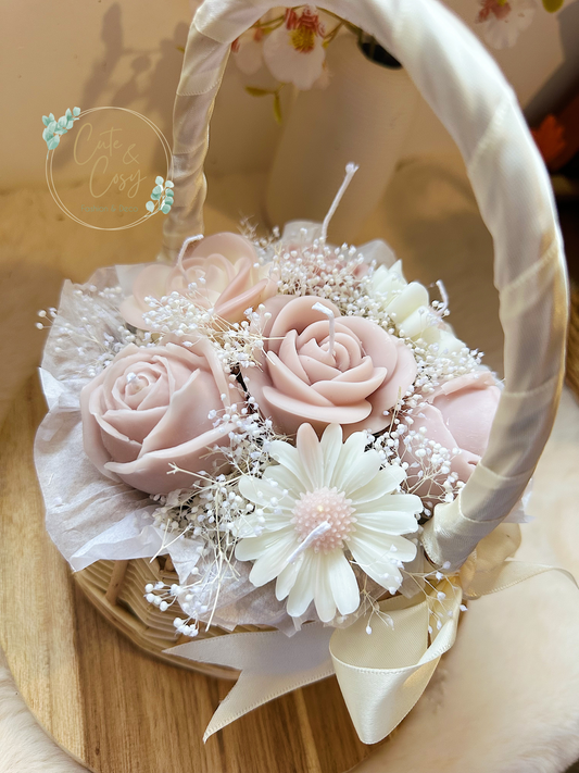 UitverkochtMini bloemenmand - wit / roos ( kaarsen)