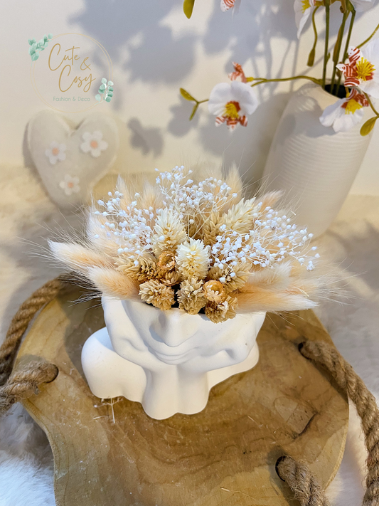 Vrouw vaas - wit/ meloen (inclusief droogbloemen)