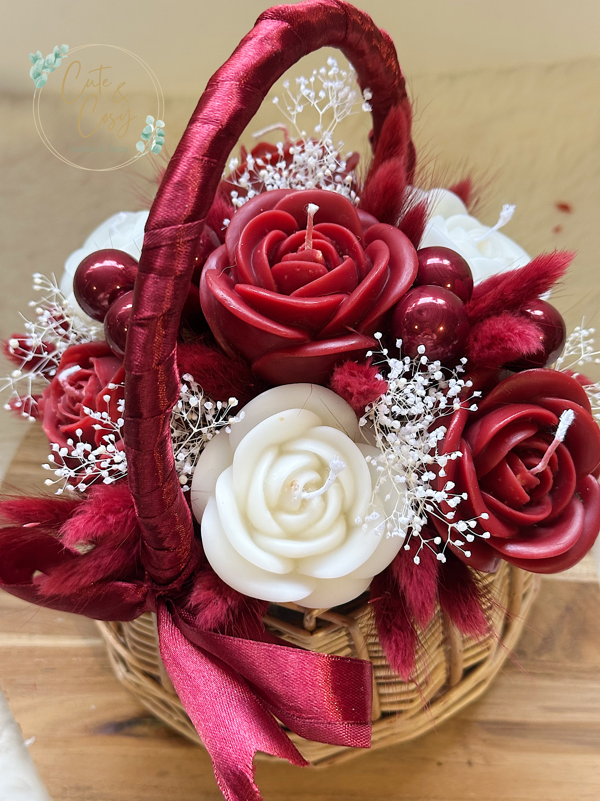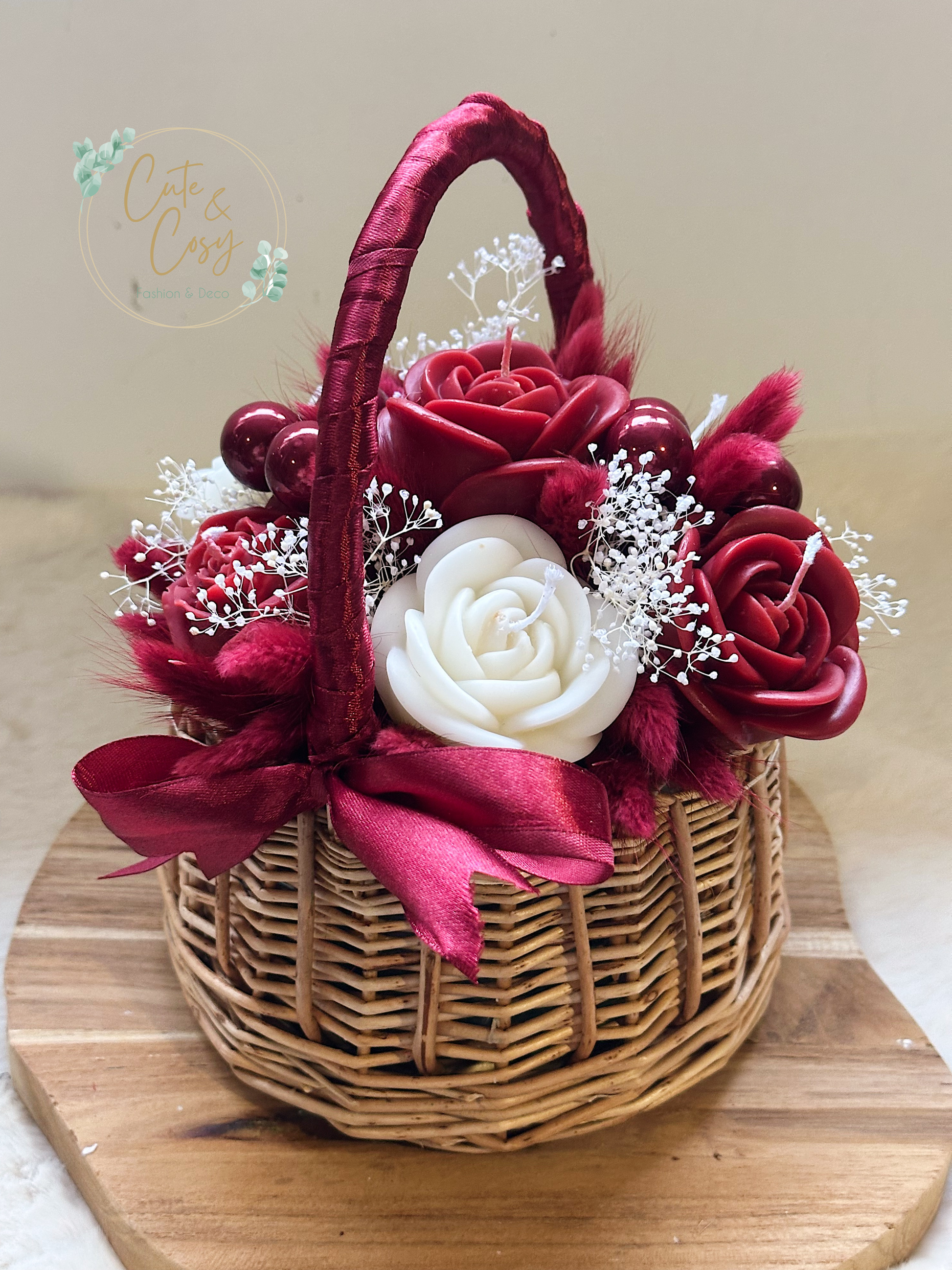 Mini bloemenmand - bordeaux (kaarsen)
