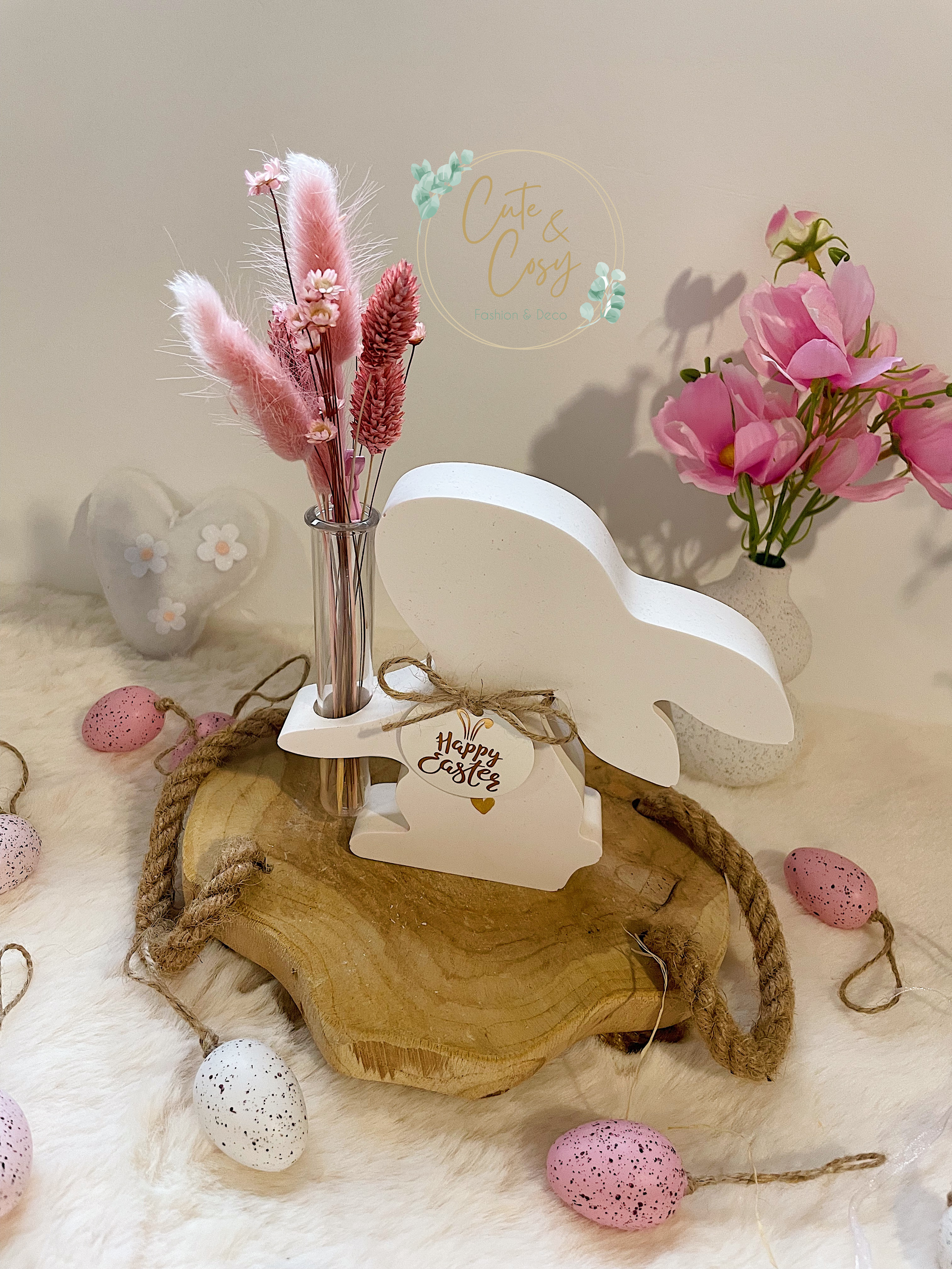 Paashaas vaasje - wit / roos (inclusief droogbloemen)